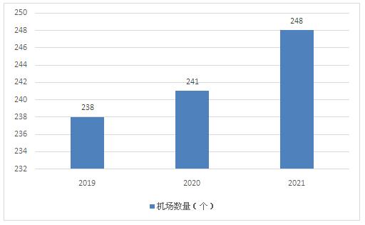 截至2021年底,我国境内共有运输机场248个,比2020年底净增7个;全国在册管理的通用机场数量达到370个,比2020年底净增31个。