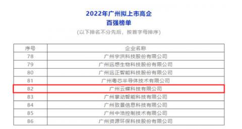 9月27日,在广州市科学技术局的指导下,2022年广州拟上市高企百强榜单发布会在广州举行。云蝶科技从全市一万两千多家高企中脱颖而出,荣登“2022年广州拟上市高企百强榜单”。