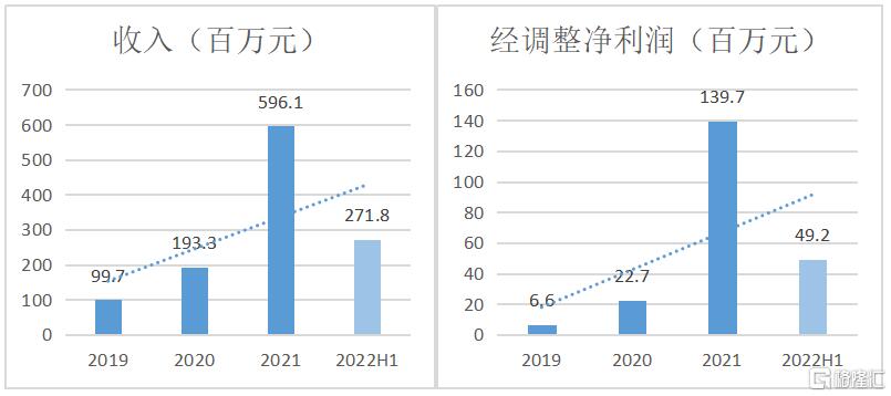 据招股书显示,凭借着覆盖面广及多元化的产品及服务,多宁生物近年来的收入及利润表现保持着高速增长态势,为公司可持续发展提供坚实支撑。公司收入由2019年99.7百万元增至2021年596.1百万元,年复合增长率高达144.5%;经调整净利润由2019年6.6百万元增至/UserFiles/image/20220713/20220713173426_8730.jpg2021年139.7百万元,年复合增长率高达360.07%。