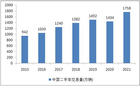 中国汽车流通协会二手车数据显示,2021年全国二手车交易量为1758.51万辆,较2020年同期增长22.62%,2020年同期受到疫情影响,全国二手车交易量为1434万辆,参考2019年同期数据,二手车交易量较2019年同期增长了17.84%。