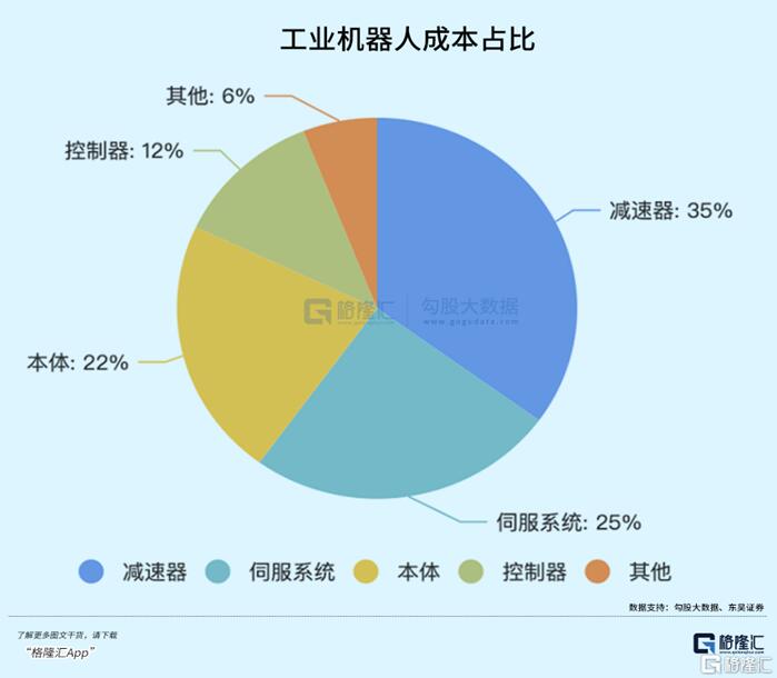 其核心零部件有三块,减速器、伺服电机和控制器,成本占比约70%。