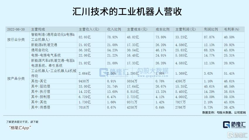 其中,汇川的营收结构比较复杂,主要向各行业提供自动化技术,工业机器人只是其中很小的一部分。
