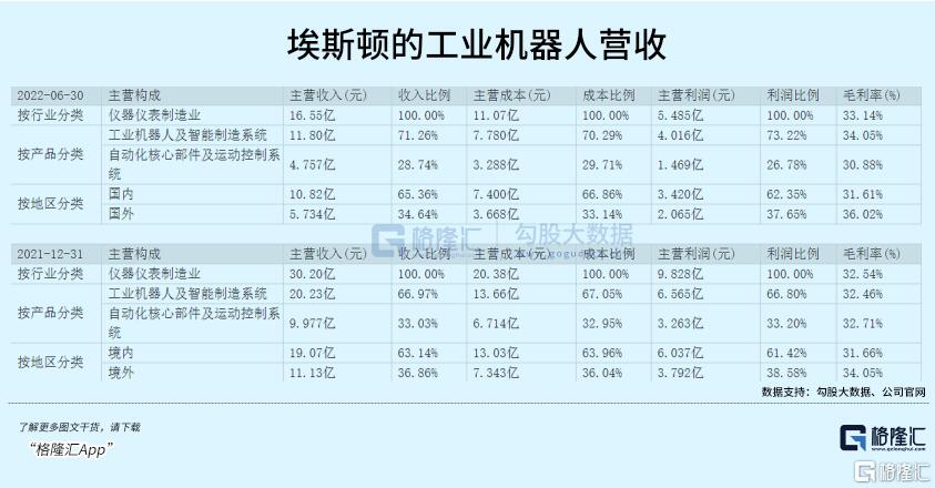 从今年上半年的数据看,工业机器人的营收为2.664亿元,仅占总营收的2.56%。