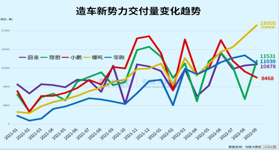 亮点仍然集中在二线新势力,特别是哪吒汽车,交付了18005辆,创出历史新高。
