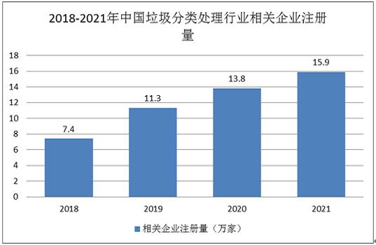截至2021年底,国内垃圾分类处理行业发展较好,各企业的开工率较高,处理能力较强。同时近几年国内垃圾分类处理行业企业数量有明显的上涨,在政策的大力推动下,垃圾分类处理需求较大,一些个体户、小型企业等纷纷进入该市场,为垃圾分类处理行业提供了重要支持。
