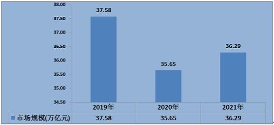 随着近几年我国基础设施投融资体制的变化,基建行业企业稳健发展基础设施项目投资业务,积极承揽高速公路、PPP、片区开发项目等,2020年由于疫情等相关原因,市场规模有所下降,随着我国疫情处于防控常态化,社会活动有序恢复,2021年基建行业市场规模达到36.29万亿元,同比增长1.8%。