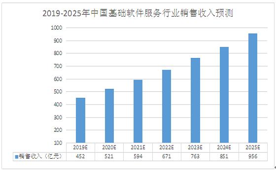 预计2025年,国内基础软件服务行业销售收入将接近1000亿元。