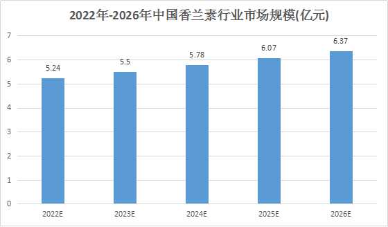 图表:2022年-2026年中国香兰素行业市场规模(亿元)