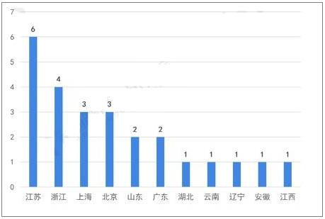 图表:2021年度中国仓储物流系统集成行业TOP20企业区域分布情况(单位:个)