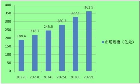 图表:2022-2027年智慧消防检测系统市场规模预测