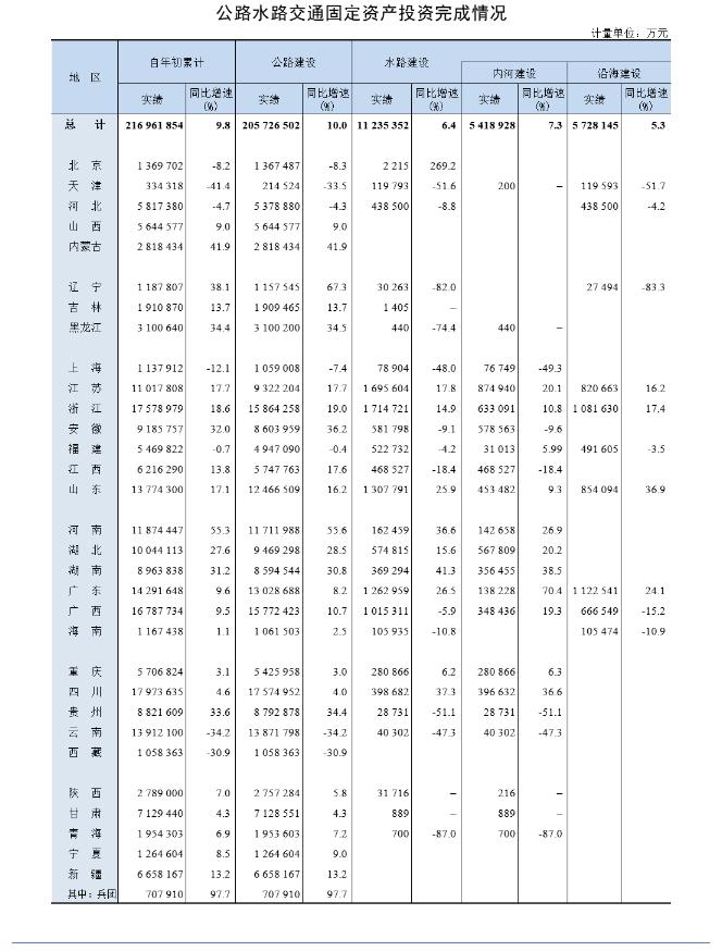 图表:2022年1-9月公路水路交通固定资产投资完成情况