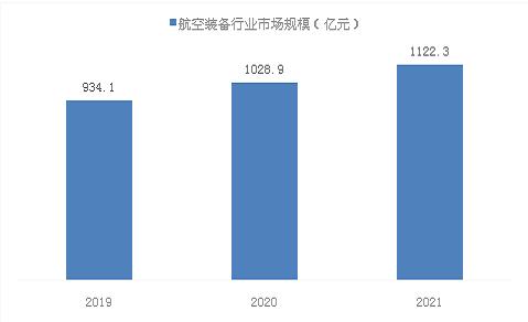 图表:2019-2021年中国航空装备行业市场规模