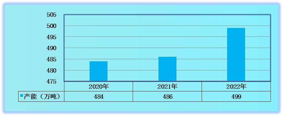 图表:2020-2022年中国氟化工行业产能