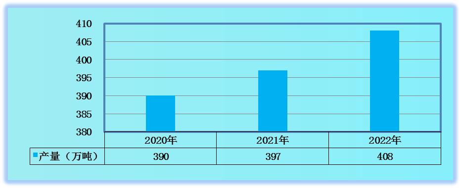 图表:2020-2022年中国氟化工行业产量