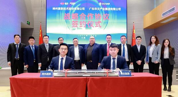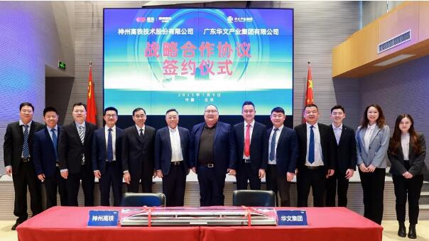 2023年1月9日,神州高铁技术股份有限公司(神州高铁:000008.SZ)与华文产业集团在京签订战略合作协议,双方将共同整合资源发挥各自优势,实现双方协同发展。在神州高铁董事长、总经理王志全,华文产业集团创始人史泽华见证下,神州高铁副总经理陈冰清、华文产业集团首席执行官李建龙代表双方在战略合作协议上签字。