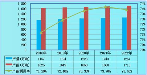 图标:2018-2022年全球超级食品产能、产量、产能利用率及发展趋势