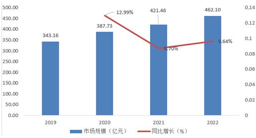 图表:2019年-2022年BOPP薄膜市场规模(单位:亿元)