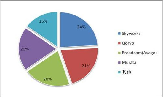 图表:全球射频前端市场竞争格局(单位:%)
