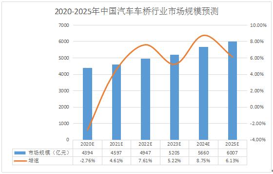 图表:2020-2025年中国汽车车桥行业市场规模预测