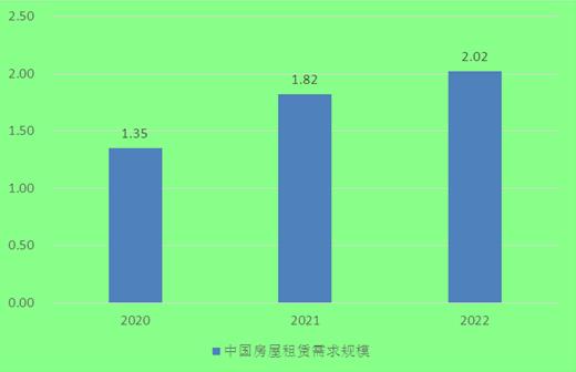 图表:2020-2022年中国房屋租赁行业市场需求(单位:万亿元)