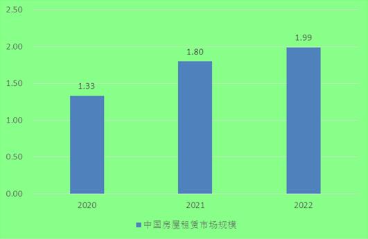 2020年中国房屋租赁市场规模达到了1.33万亿元,2022年达到了1.99万亿元。