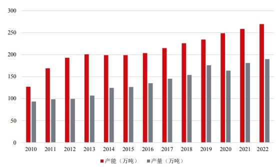 图表:我国沉淀法二氧化硅产能和产量情况