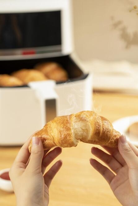 幸福西饼自烤面包是由专业化工厂生产,采用急速冷冻锁鲜技术保存的预制面包。购买幸福西饼自烤面包的消费者只需将自烤面包放入空气炸锅中,经过160°5分钟的加热,就可以食用了。新鲜出炉的自烤面包品质可媲美面包房现烤品质,是家庭用户早餐、白领办公室下午茶、宵夜解馋快捷方便的新选择。