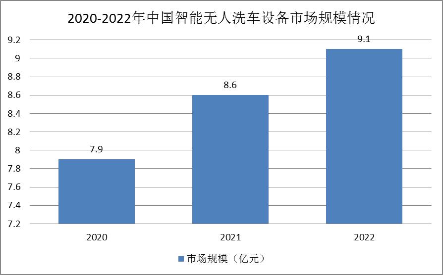 中研普华产业研究院数据显示,2022年国内智能无人洗车设备产业市场规模约为9.1亿元。整个行业的发展较快,智能洗车站点逐渐增多,行业的供给能力逐年上升。