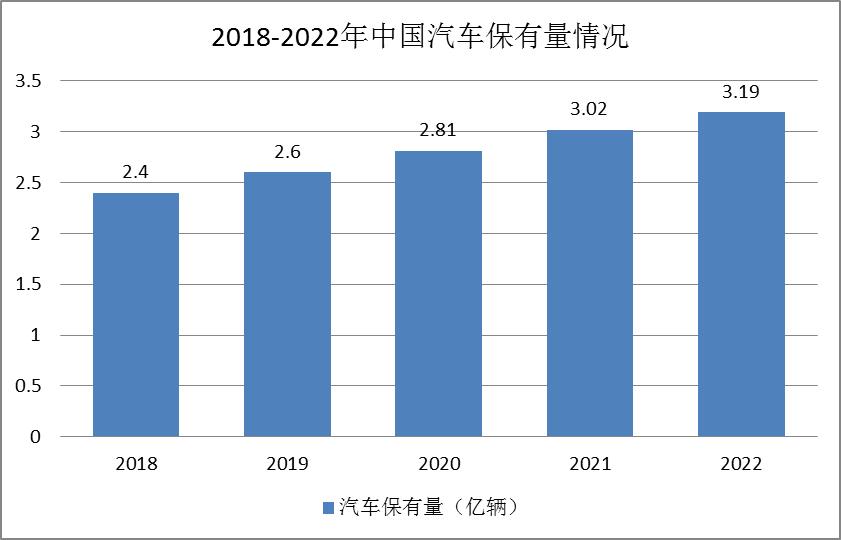 图表:2018-2022年中国汽车保有量情况