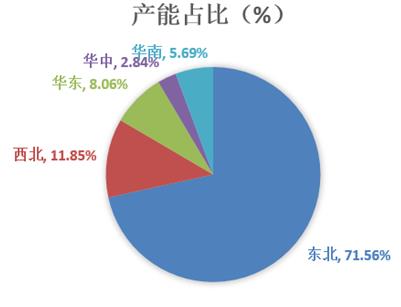 从区域来看,中国石蜡产品产能产量多集中于东北地区,东北地区占比为71.56%,占据大部分石蜡产量市场,主要是由于东北地区较多大型石化企业,从而具备较强的产业链关联优势,使得石蜡产业链聚集于东北地区。其次为西北地区,占比11.85%,较之东北地区差距较大。