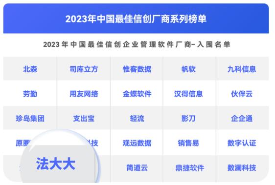 近日,在第一新声联合天眼查开展的2023年中国最佳信创厂商系列榜单评选征集中,法大大入围“2023年中国最佳信创厂商”,信创能力再获认可。