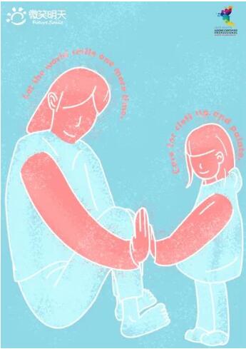 我们可以看到,在第一眼感受这个作品时,会看到这个作品是有一个笑脸位于整个海报中央,而这个笑脸则是大人在帮助小孩时两人的手所构成的,很好地点明了本次大赛的主题,同时,作者用版画式方式来创作本次作品,线条周围还做了很多肌理处理,技术方面也得到了评委组的一致认可!是一份不可多得的佳作!
