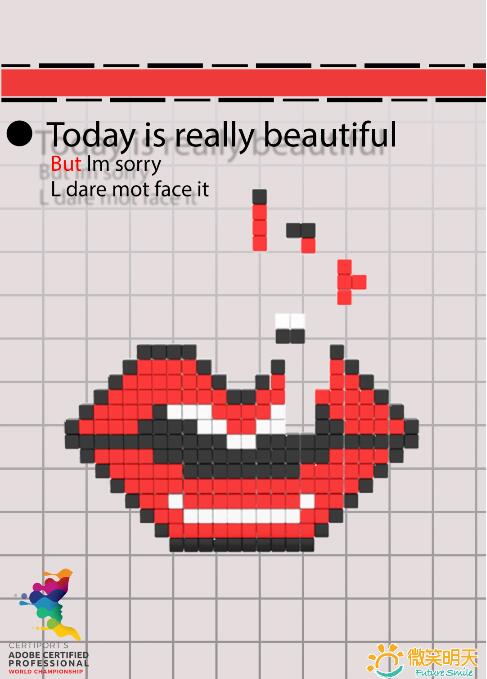 本作品选手的创意思路十分流畅,懂得调配各种细节使得画面更具特色,如色调方面,参赛选手将整个画面色调和整个页面的画面融合地恰到好处,同时,选手将作品拉长,使得整体的作品充满了故事性,在画面中的小女孩的表情处理的很到位,非常好的突出了本次主题。