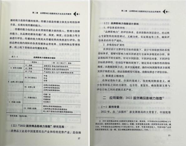 关于品牌影响力指数的更多应用成果,张曦表示:品牌影响力指数研究方法自2022年初步完善并交付书稿后,陆续已在以企业、城市、旅游、公益组织等不同的主体领域展开应用,除了书中的《2022国货精品影响力指数》、《2022中国研学旅游影响力指数》外,已公开发布的指数应用成果还包括:《2023中国家居品牌影响力指数报告》、《2022汽车品牌影响力指数报告》、《2022科学消费影响力指数报告》、《2022年上半年中国露营产业影响力指数报告》、《2022全屋定制品牌影响力指数报告》、《2022中国卫浴品牌影响力指数报告》、《海南民俗旅游影响力指数报告》、《2022中国装配式装修产业发展指南》等。