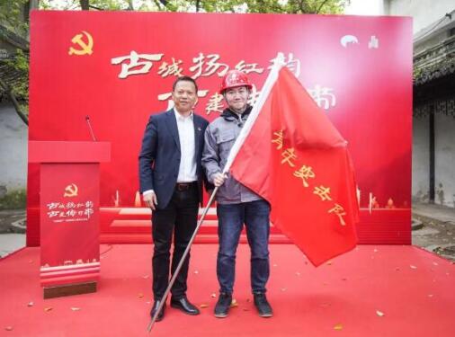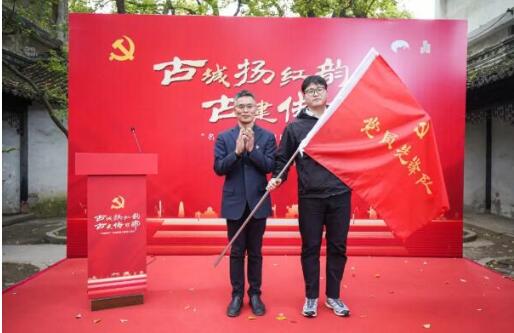 苏州名城保护集团党委副书记钱菊兴向“党员先锋队”授旗