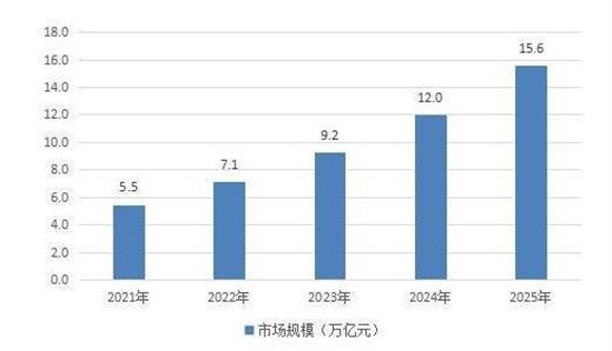 图表:2023-2025年中国智慧养老市场规模(万亿元)