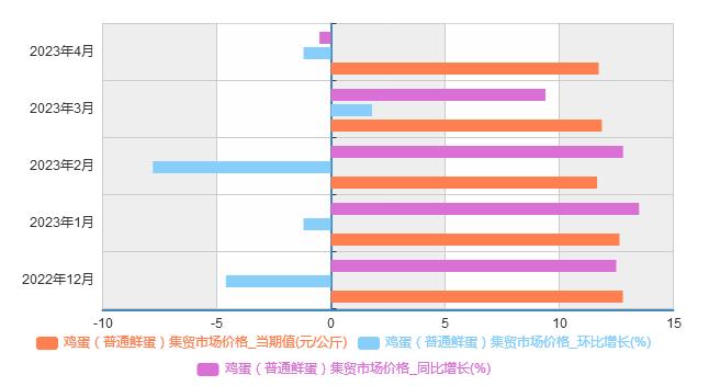 鸡蛋(普通鲜蛋)集贸市场价格当期值为12.79元/公斤,同比增长12.5%,较上年同期增加了1.42元/公斤。