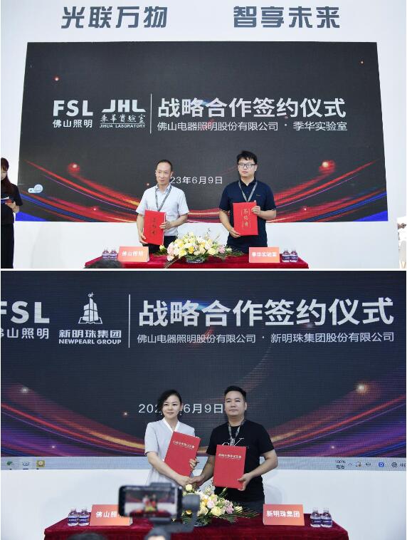 为进一步推进产业链协同创新和产学研融合创新,展会首日,佛山照明与季华实验室、新明珠集团股份有限公司分别进行了合作签约。佛山照明与签约单位将充分发挥各自优势,在产业供给、项目互荐、渠道资源、技术研究、产品创新等领域开展深度合作,实现优势互补、融合发展。