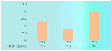 图表:2019-2021年全球高压柱塞泵行业市场规模