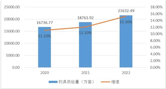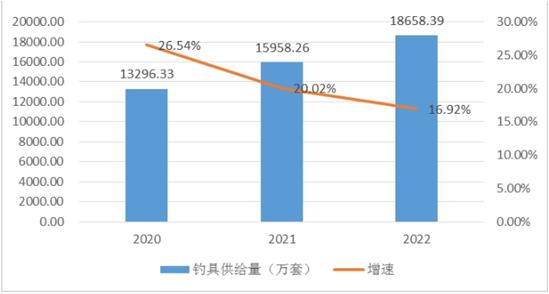 图表:2020-2022年中国钓具供给及其增速
