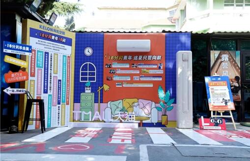 立足于品牌年轻化转型的科龙空调在2023年夏日营销将目光锁定于策展营销,联合青岛小红楼美术馆推出限时16分贝毕业展快闪活动,毕业展划分为:16分贝青年16问、产品体验两大区域,沉浸式交互年轻人群。