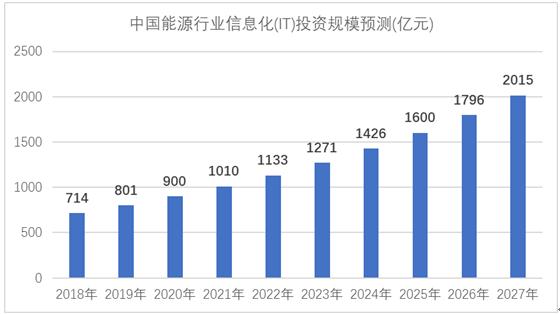 图表:2023-2027年中国能源行业信息化(IT)投资规模预测