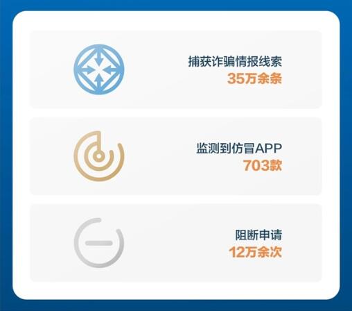 近年来,金融市场诈 骗手段不断更新迭代,强大的风控反欺诈体系是为公司业务、消费者权益保驾护航的重要屏障。嘉银金科在庞大的数据库积累和先进的算法应用支持下,高效利用大数据、机器学习、人工智能等技术,建立更加精准科学的反欺诈规则、策略、模型和图谱,避免业务风险和用户损失,交出了一份满意的反欺诈成绩单。2022年,嘉银金科反诈平台共捕获诈 骗情报线索35万余条,监测到仿冒APP共计703款,及时发现并进行阻断申请达12万余次。