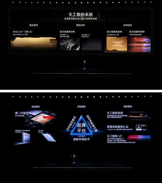 极致的性能释放离不开极致的散热能力,一加 Ace 2 Pro 搭载全球首个航天级散热系统“天工散热系统”,从散热面积、散热材料及空间结构入手,护航旗舰性能释放:一加 Ace 2 Pro 搭载9140mm2 万级单VC; 并全球首发航天级金刚石导热凝胶和航天级超导热石墨,大幅提升导热率;一加 Ace 2 Pro 还首次在一片 VC 内实现两套完整散热循环,并采用全球首创的仿航天火箭发动机喷筒设计“拉瓦尔气道”,加速气流循环速度提高 VC 散热效率。在一加看来,顶级性能与顶级的性能硬件、顶级的性能调校以及顶级的散热能力三者缺一不可,共同实现极致性能彻底释放。