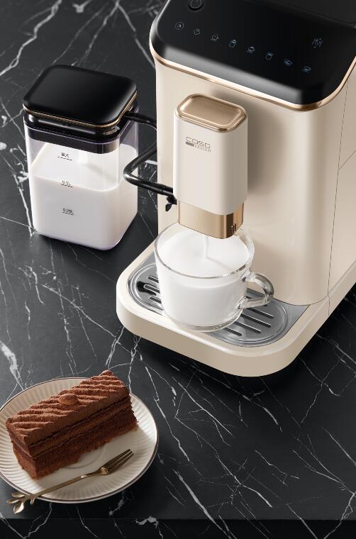 CASO卡梭全自动咖啡机则搭载了智能自清洗的系统,不仅轻触“手动清洗”的图标可以自动对管路进行彻底的清洗,在不断电不操作、待机时间过长或刚开机的时候,也能自动冲洗管路。并且还搭载了超小型可拆卸冲泡器和一键清空豆仓的功能,全方位解决了清洗难题。
