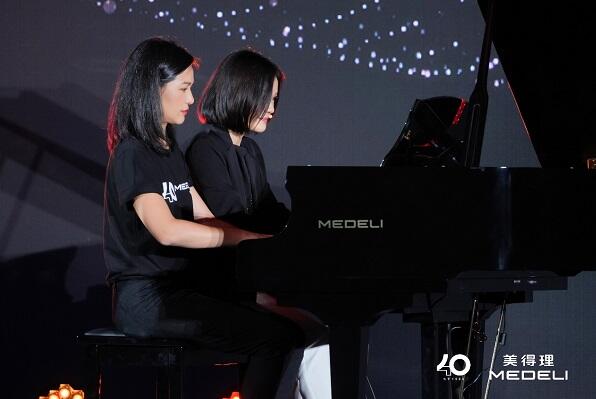 与常规发布会不同的是,在直播接近尾声的时候,MEDELI集团董事长郑荃文和美得理总经理郑文筠进行了一场精彩的四手联弹,为本场发布会直播划上一个漂亮的句号。乐器不仅仅是有形的演奏工具,更是热爱音乐的人们探索音乐无限可能的精神载体。我们有理由相信,本身就酷爱弹奏的企业领航人,定能把美得理这艘音乐巨轮带上更远更美好的未来!