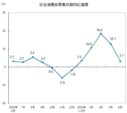 2023上半年,社会消费品零售总额227588亿元,同比增长8.2%。其中,除汽车以外的消费品零售额205178亿元,增长8.3%。6月份,社会消费品零售总额39951亿元,同比增长3.1%。