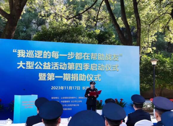 警企联动,步步为爱,益起行善,公益永远在路上。2023年11月17日,由公安部新闻传媒中心中国警察网联合人民国肽集团共同发起的“我巡逻的每一步都在帮助战友”大型公益活动第四季暨第一期捐助仪式在湖南长沙正式启动!