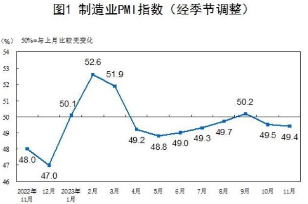 11月份,制造业采购经理指数(PMI)为49.4%,比上月下降0.1个百分点,制造业景气水平略有回落。
