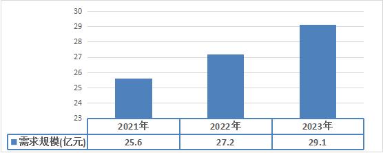 图表:2021-2023年高端弥散供氧设备行业需求规模